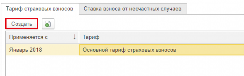 Далее нам необходимо создать новый страховой взнос, для этого воспользуемся кнопкой Создать